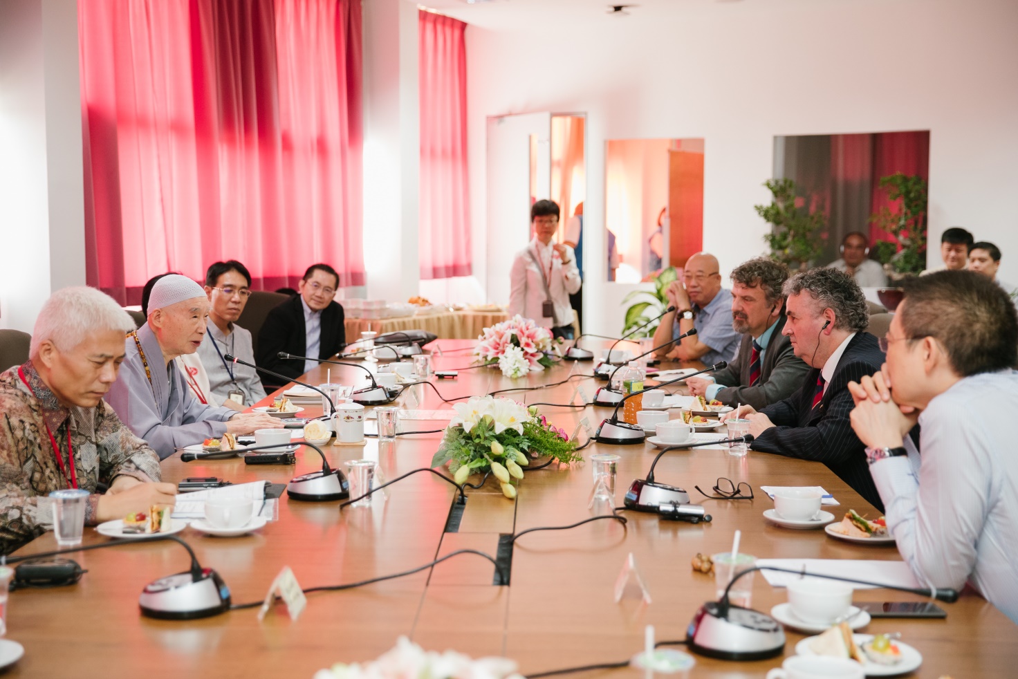 十一月二十一日,馬六甲天氣明媚。威爾士大學校長麥迪文·休斯教授(Prof. Medwin Hughes)、國際事務與提升副校長西蒙·哈士雷教授(Prof. Simon Haslett, Pro Vice-Chancellor —International and Enhancement)、趙艷霞教授一行在馬來西亞漢學院會議室內,與淨空老教授、英國漢學院長老院長周春塘教授、悟行法師、馬來西亞漢學院資助者賴杰勇居士等一同聽取漢學院方面的簡報。這是為了推進漢學在英國與馬來西亞的傳播、繼承,以及大學體系的學位認證而做出的初步努力。