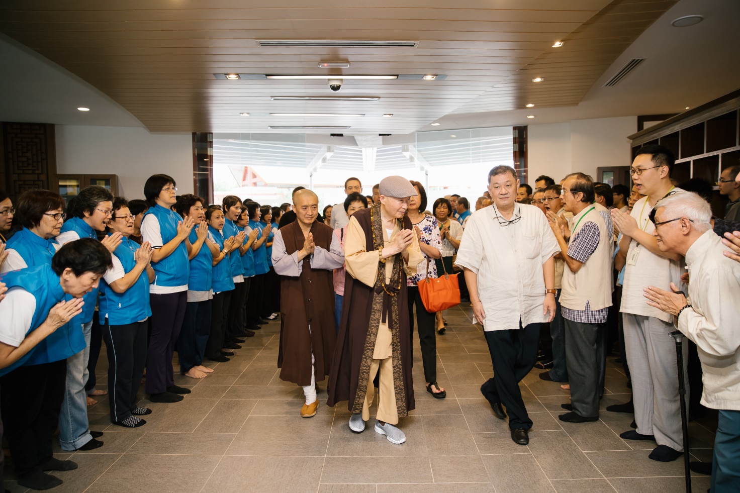 ■馬來西亞漢學院師生與教職員工和當地老同修們歡歡喜喜、整齊地稱念阿彌陀佛名號,迎接淨空老教授的蒞臨