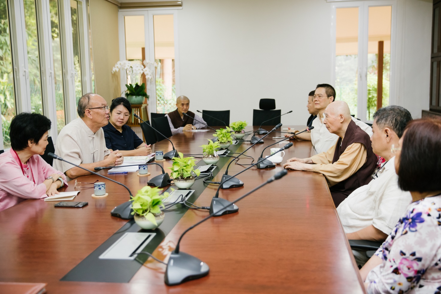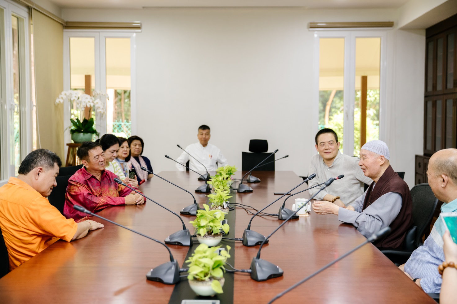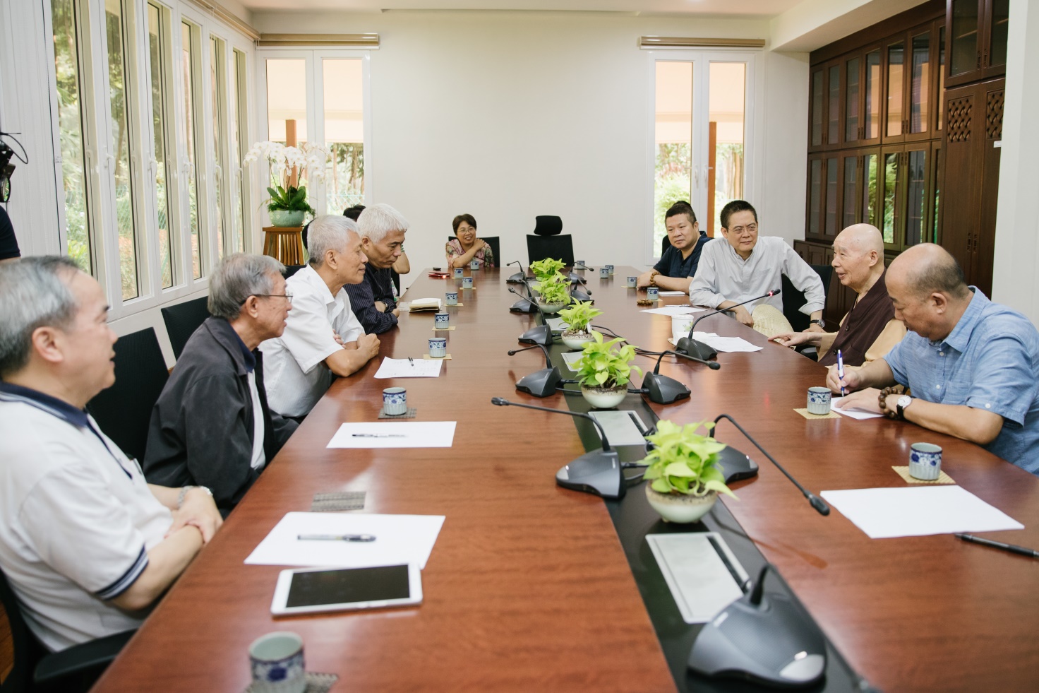 ■交流活動正式開始前,在華總大廈的貴賓室,淨空老教授與當天出席活動的華總主要領導人、華社領導進行短暫交流