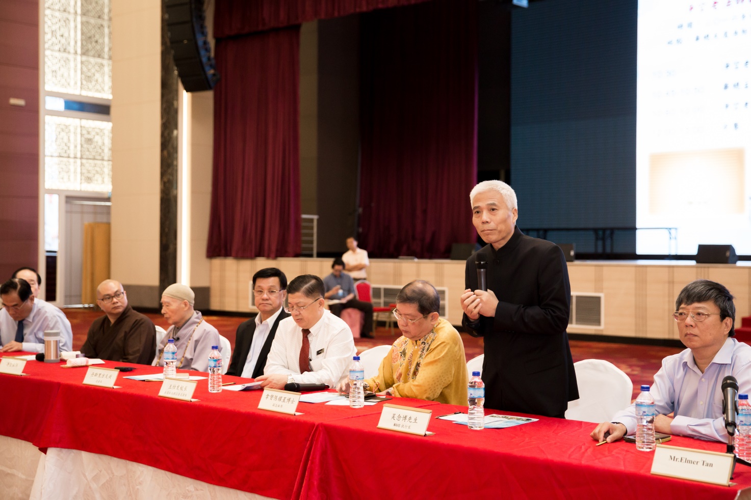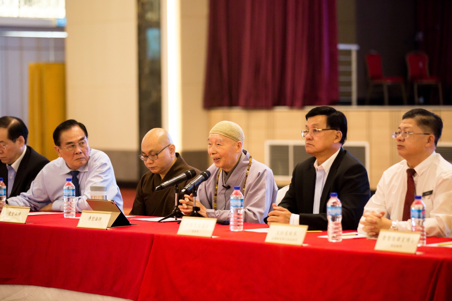 在交流會上,方天興主席首先致歡迎詞。方主席談道,非常欽佩淨空老教授謙虛的大家風範;並表示,像馬來西亞這樣一個由多元文化和宗教信仰組成的國家,最希望聽到一個心善、諒解、和諧與中庸的相處之道。在宗教的領域方面,馬來西亞需要大愛、同理、慈悲和包容的崇高的思惟和意識形態,大會禮請淨空老教授現場致詞。老教授對大家說——