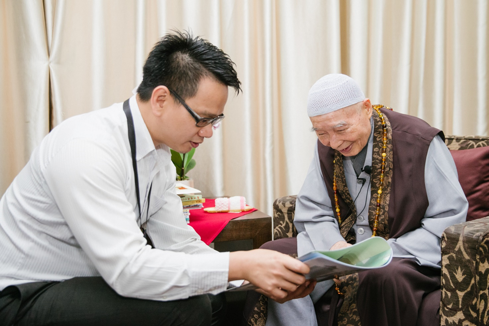 ■世界著名設計師、馬籍華人周仰傑先生與其友人、工作人員於11月17日拜訪淨空老教授。周先生向淨空老教授請教,現代社會很多人思想浮躁,要怎樣才能不去想這些問題?淨空老教授回答道:「不想不可能;(淨土宗的方法簡單易行)就想阿彌陀佛……就算是仇敵也要愛他,沒有對立;因為一切眾生是一體的。」