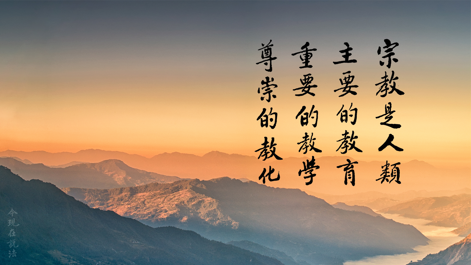 現在很多人提起宗教,馬上就連起掛鉤迷信,宗教是什麼?迷信。迷信怎麼能產生文化?這外國哲學家說的,對漢學也有研究,西方人說的,人類的歷史先有宗教後有文明,文明是從宗教裡產生的,沒有宗教的文明時間都不長,二、三百年就沒有了,所以文明的基礎是宗教,沒有宗教的文明時間很短。這個地球在最近三千年,也就是夏商周到我們現代,三、四千年,這才叫文明。現在世界上二十多種文明,只剩下一種,中國的,其他的都沒有了,不存在了。中國文明現在也出問題了,為什麼?如果不學漢字,不讀文言文,中國老祖宗留下來這麼多的典籍,我們沒有能力閱讀,對我們沒有幫助。老祖宗做得太好了,我們對不起老祖宗,不學了。那不學,再頂多過一百年,中國這個文明在地球上也消失了,這是非常可怕的一樁事情。