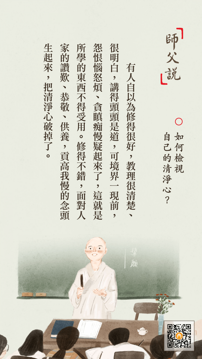<p> 有人自以為修得很好,教理很清楚、很明白,講得頭頭是道,可境界一現前,怨恨惱怒煩、貪瞋痴慢疑起來了,這就是所學的東西不得受用。修得不錯,面對人家的讚歎、恭敬、供養,貢高我慢的念頭生起來,把清淨心破掉了。</p>
