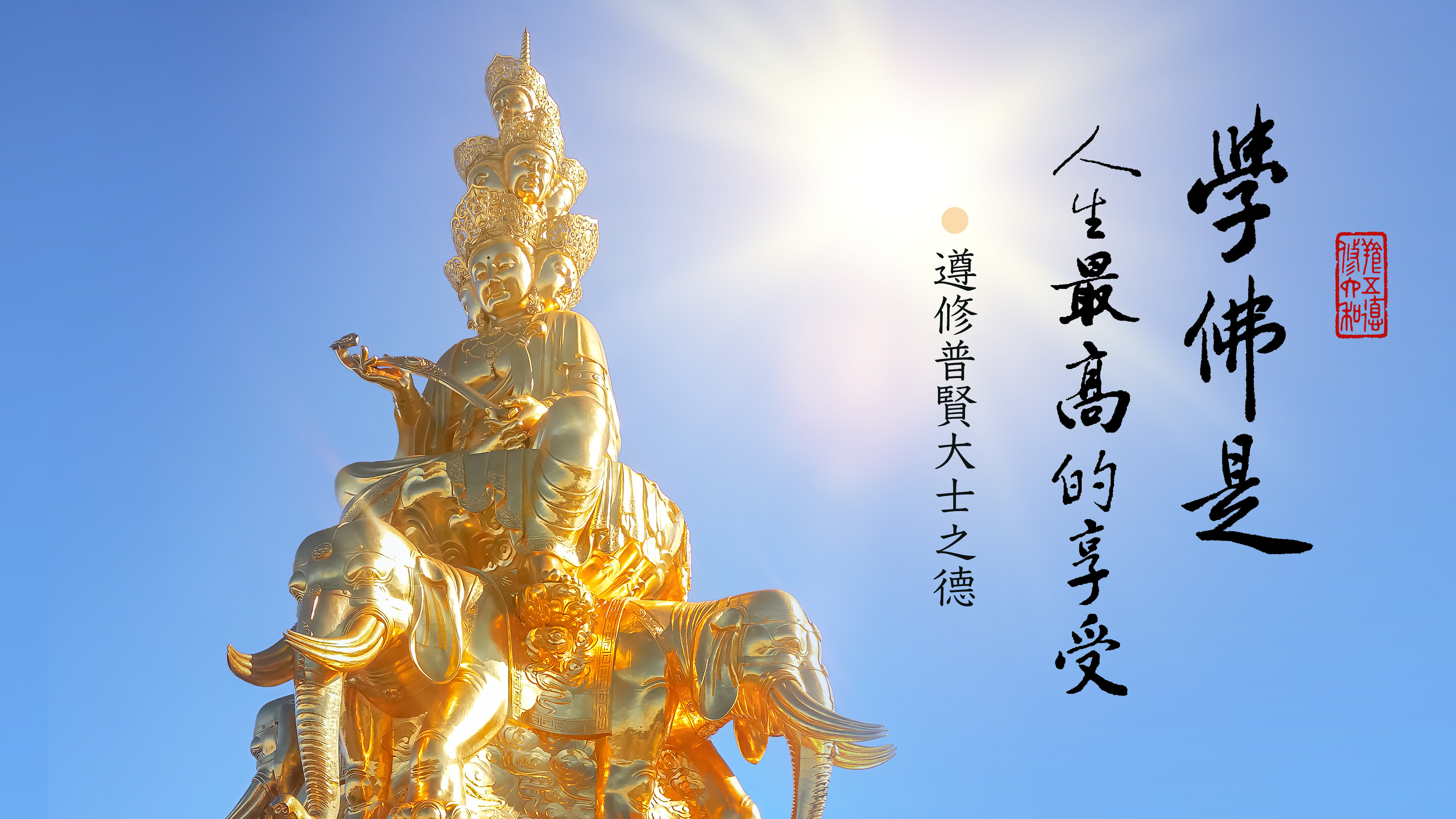 為什麼要學佛?佛是智慧、是覺悟,學佛就是學習過高度智慧、真正覺悟的生活。應該怎樣宣揚佛法,讓眾生也能過這樣的生活?一定要「遵修普賢大士之德」。修學以三位菩薩作總綱領,普賢、觀音、文殊。普賢菩薩是表實踐;文殊是表智慧;觀音是表慈悲。十方三世一切諸佛如來,都是因為修學這三個法門,才成就無上的佛果。
