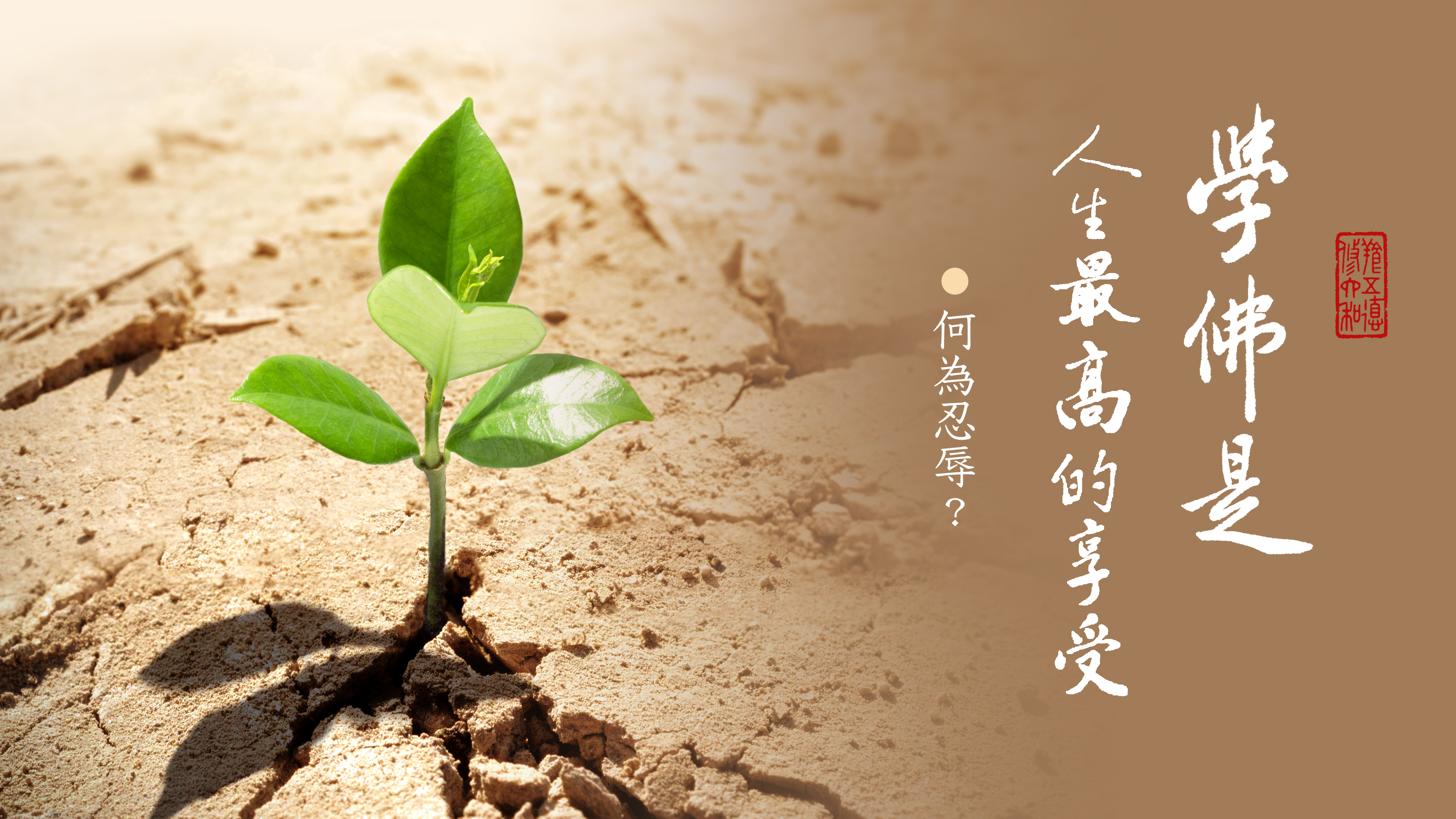 忍辱,意思是要有極大的耐心。歸納為三大類:第一,人為的加害要能容忍。好事多磨,面對障難,要不退心。第二,對於自然災害要能夠忍受。不能因為天氣、自然環境的變化,減緩自己的修學。第三是修行時間很長要能忍耐。任何一個法門,都有它的深度、廣度,不是短時間能夠修習成就的。