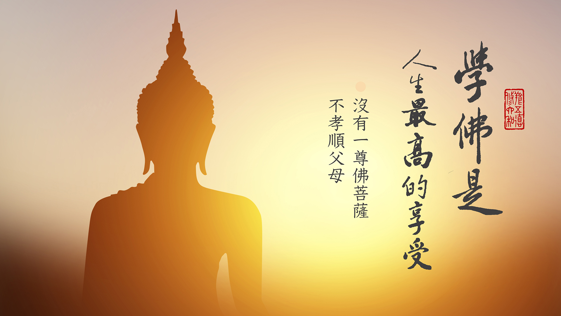 佛法也是以「孝道」為基礎,沒有一尊佛菩薩不孝順父母。佛陀告訴我們,修學大乘佛法,要以「三福」為基礎,三福的第一句,就是孝親尊師,如果我們對父母師長不恭敬,縱使一天念十萬聲佛號,跟佛的心願不相應,也不能夠成就。