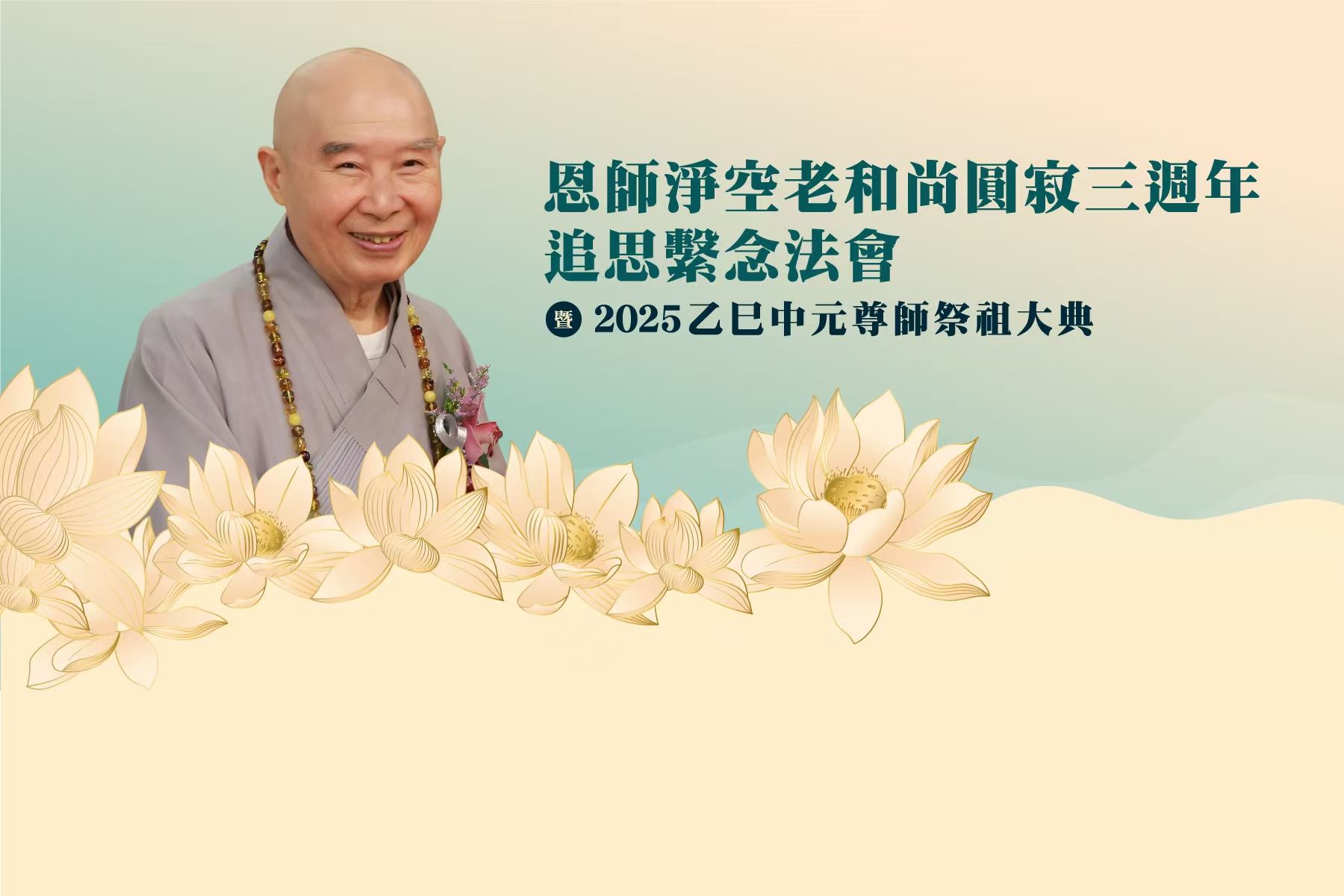 敝會謹訂於2025年8月8日至10日舉辦「恩師 淨空老和尚圓寂三週年追思繫念法會 暨 2025乙巳中元尊師祭祖大典」。詳情如下: